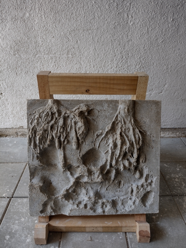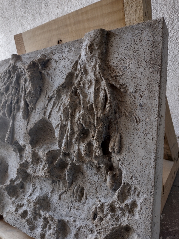 Betonový reliéf ze série Wood Wide Web, 52x59x8 cm, 2023 From the Wood Wide Web series, concrete, 52x59x8 cm, 2023